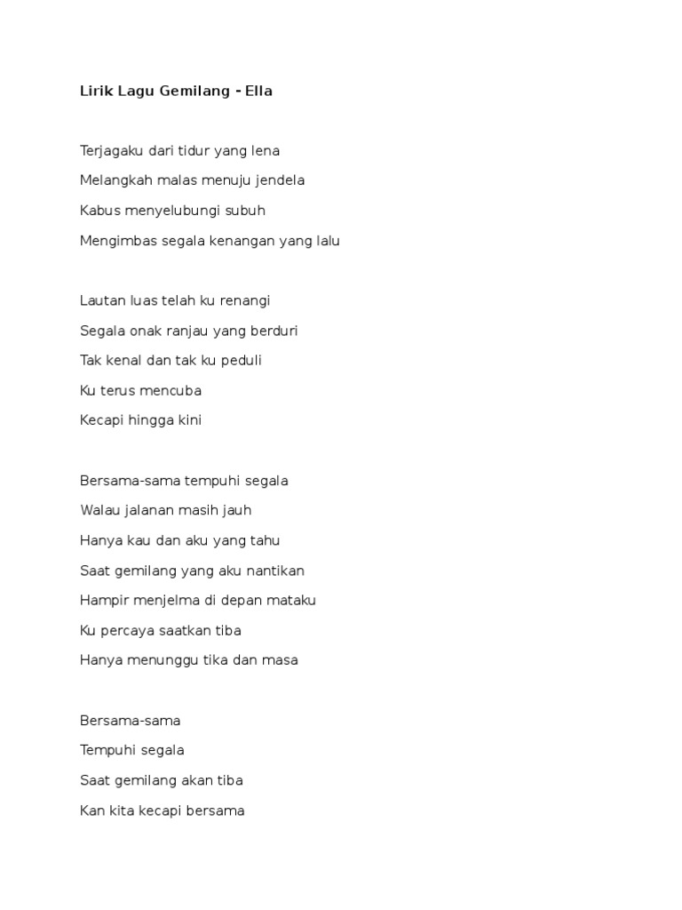 Lirik Lagu Gemilang Ella Tuliskan Nilai Moral Yang Tersirat Dalam Lagu Lagu Berikut