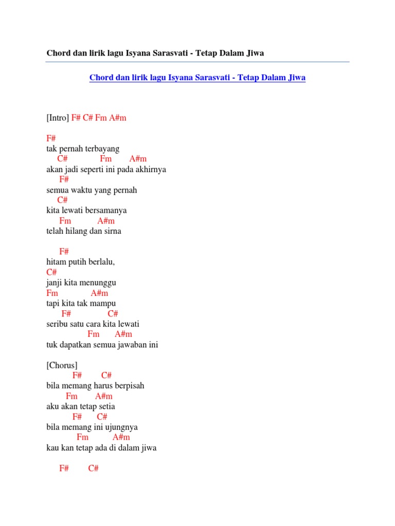 Chord Jpeg Kunci Gitar Chord Lirik Lagu Isyana Sarasvati Tetap Dalam Jiwa