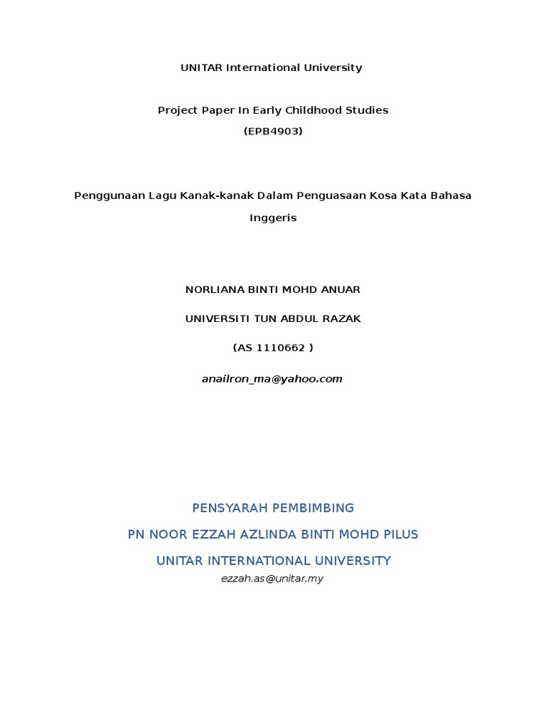 Penggunaan Lagu Dalam Peningkatan Kosa Kata Bahasa Inggeris Kanak Kanak Prasekolah