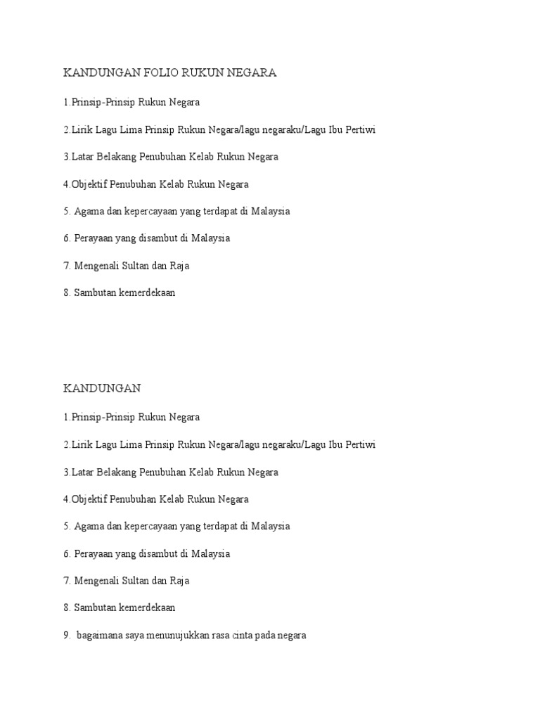 Kandungan Folio Rukun Negara