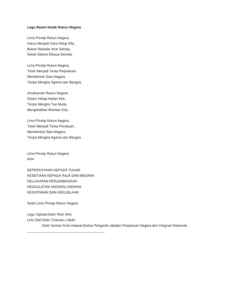 Lagu Rasmi Kelab Rukun Negara Docx
