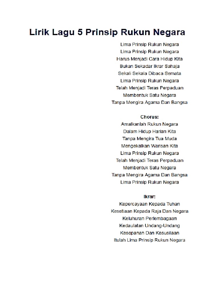 5 Prinsip Rukun Negara Lirik