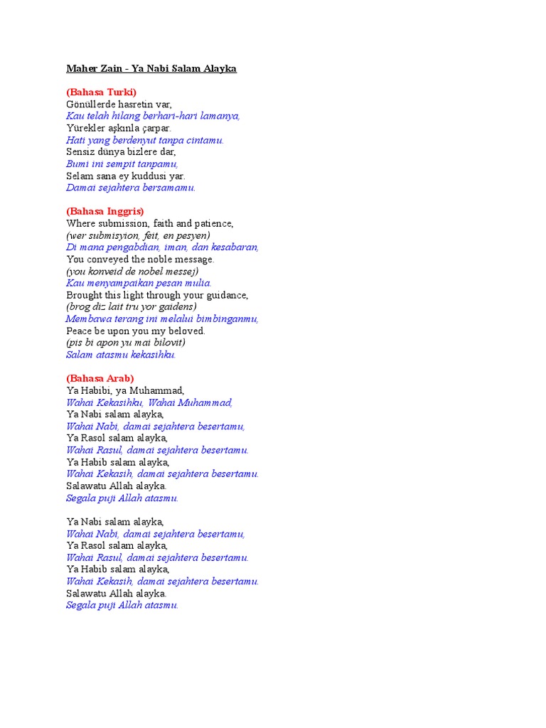 Teks Lagu Ya Nabi Salam Alaika Maher Zain Berbagai Teks Penting