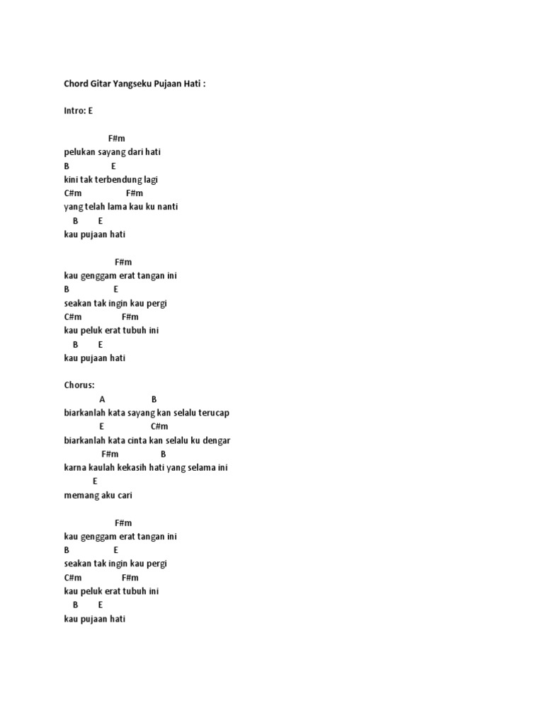 Chord Kunci Gitar Dan Lirik Lagu Pujaan Hati Yangseku Biarkanlah Kata Sayang Kan Slalu Terucap Tribun Solo