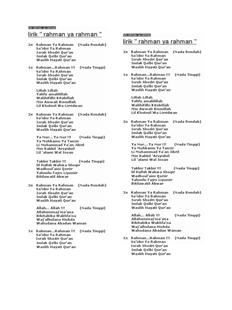 Lirik Rahman Ya Rahman Rohman Ya Rohman Lirik Qosidah Sholawat Facebook